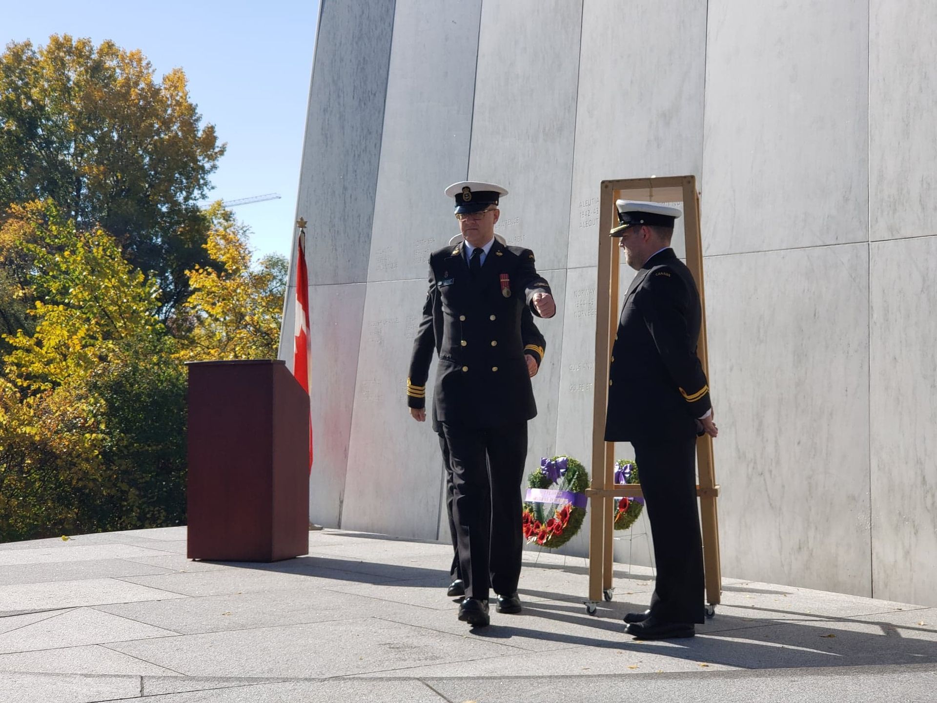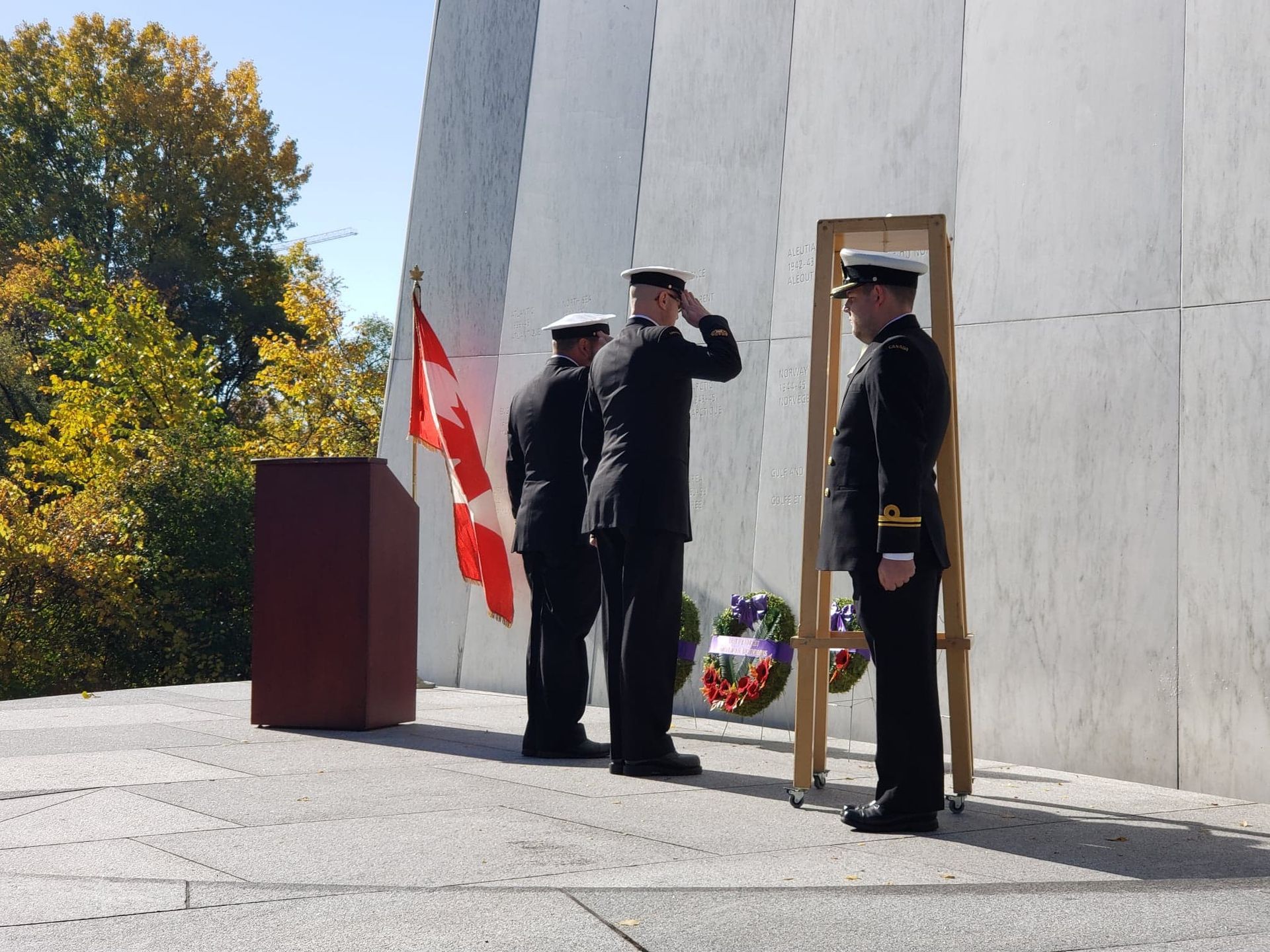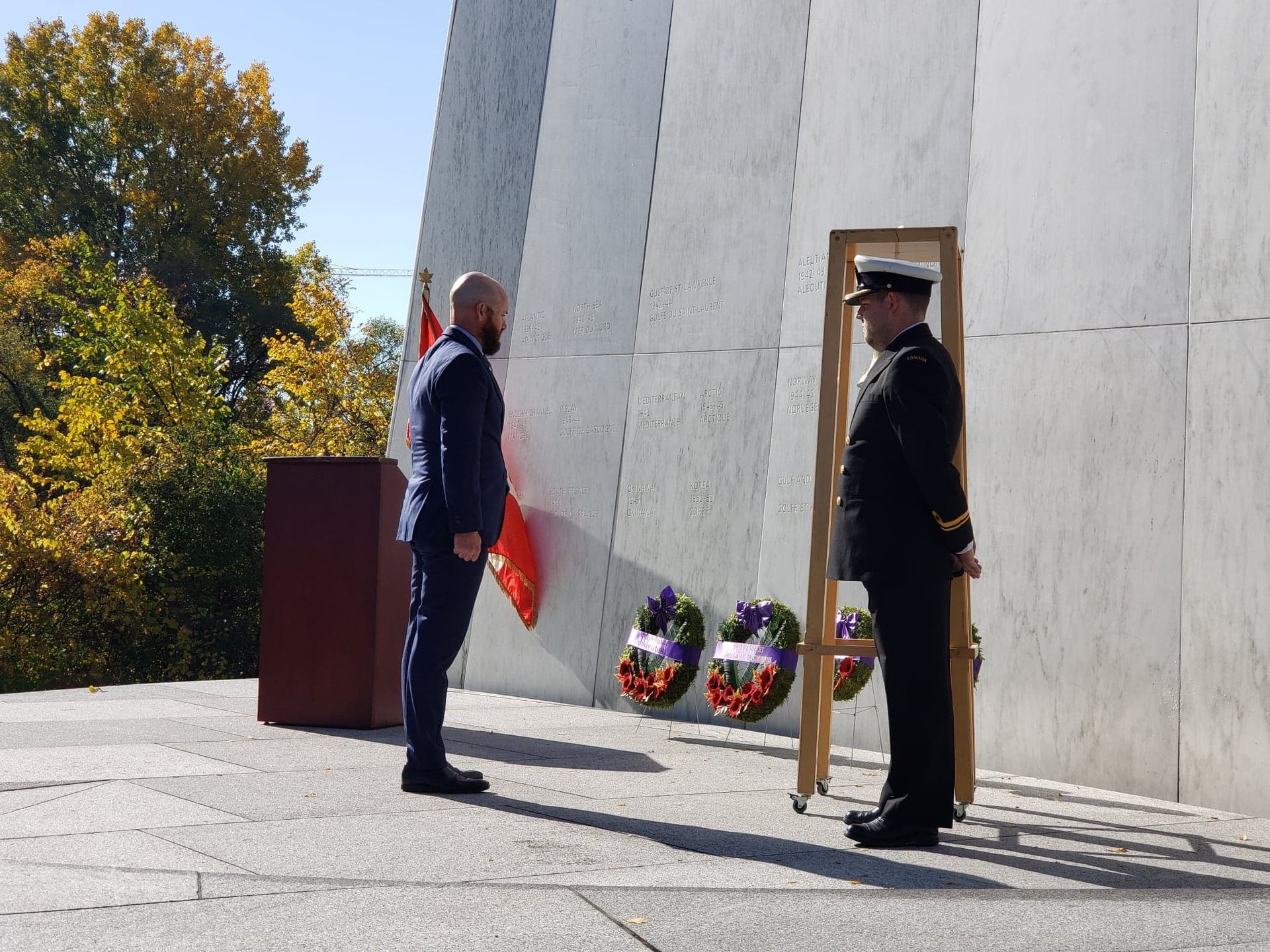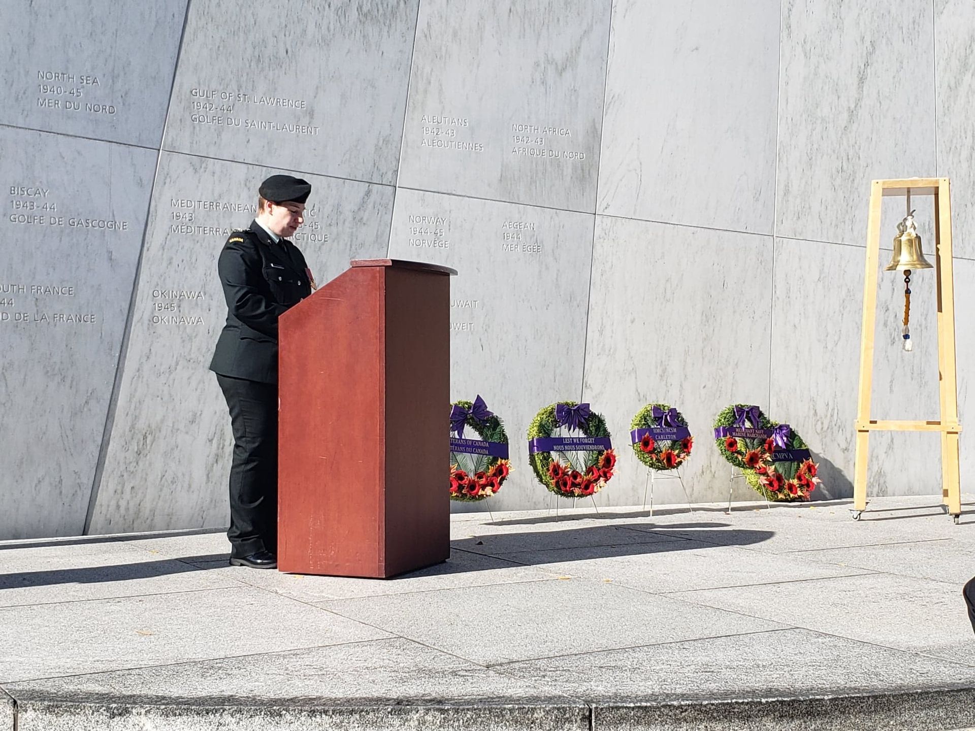 OTTAWA, YESTERDAY – Mr. Stéphane Ouellette, President and Chief Executive Officer, Merchant Navy Commemorative Theme Project (MNCTP), was joined by members of the Royal Canadian Navy, and the RCMP Veterans’ Association, at the Royal Canadian Navy Monument (Ottawa) to remember the sinking of the Newfoundland ferry SS Caribou.