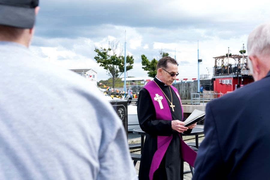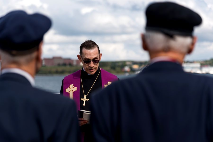 HALIFAX, TODAY – Rev. Dr. Brian Graham, Principal Chaplain for The Allied Merchant Navy, in conjunction with Merchant Navy Veterans Day commemorations, delivered a Benediction to assembled Merchant Navy Veterans, officials, and organizers at the reception and dinner for the Convoy Cup, at the Dartmouth Yacht Club, in Dartmouth, Nova Scotia.
