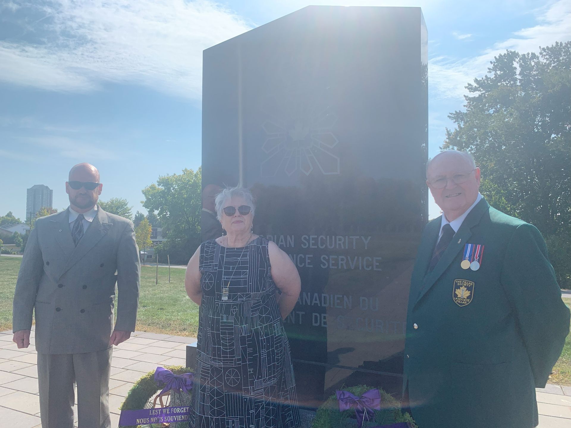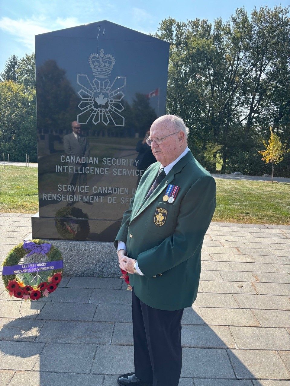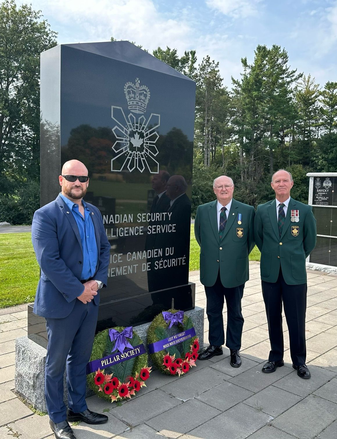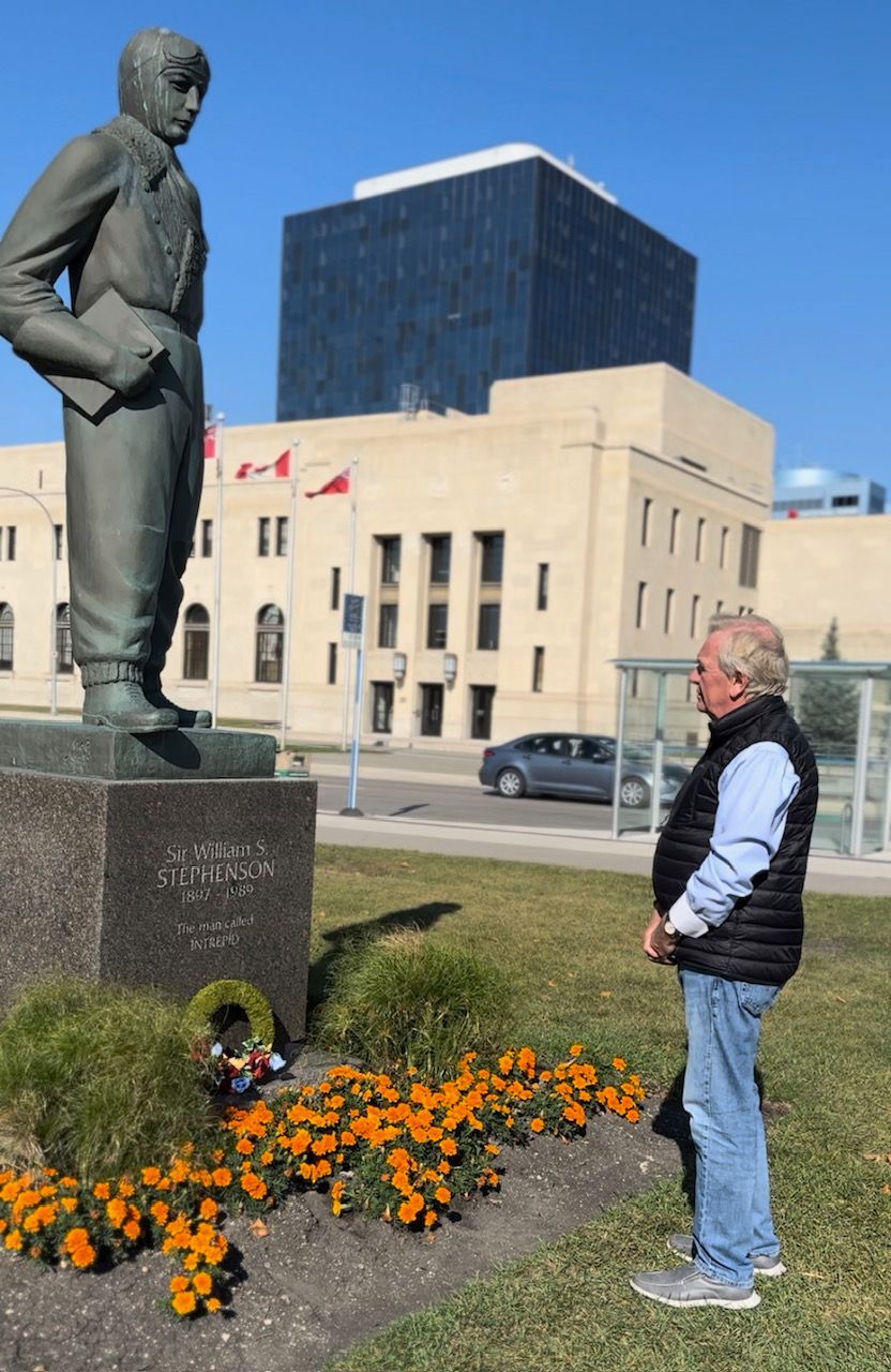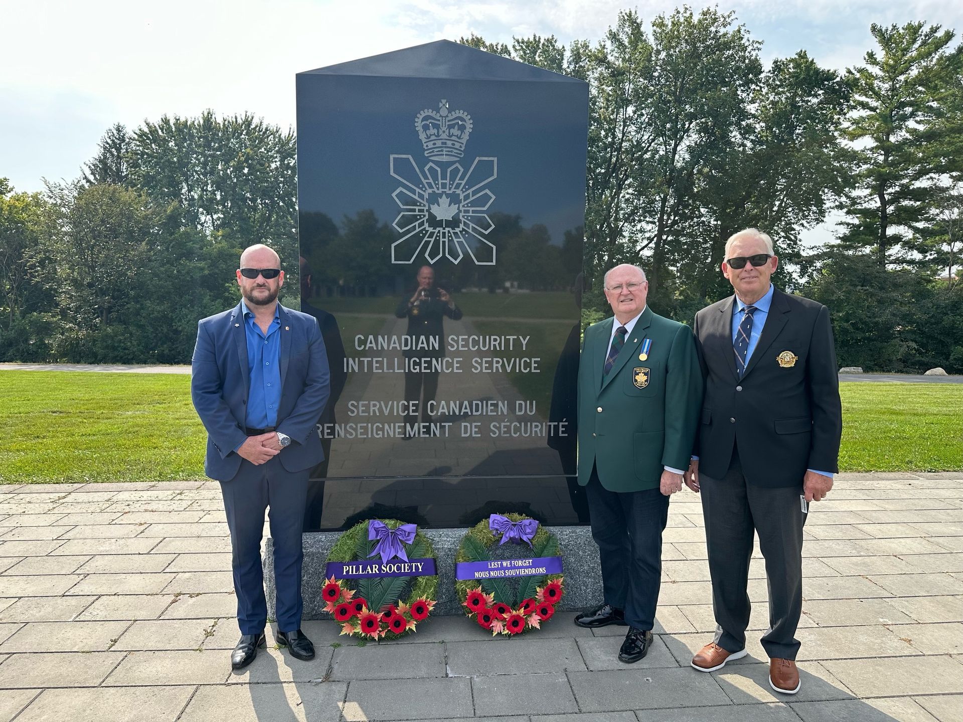 OTTAWA, WINNIPEG, SEPTEMBER 18, 2025: Mr. Stéphane Ouellette, President and Chief Executive Officer of the Merchant Navy Commemorative Theme Project (MNCTP), was joined by members of the Pillar Society and Mr. Dwight MacAulay, CVO, Past President of the Intrepid Society of Winnipeg. Together, they honoured the legacy of Sir William Stephenson and the 140 stars on the Central Intelligence Agency (CIA) Memorial Wall.