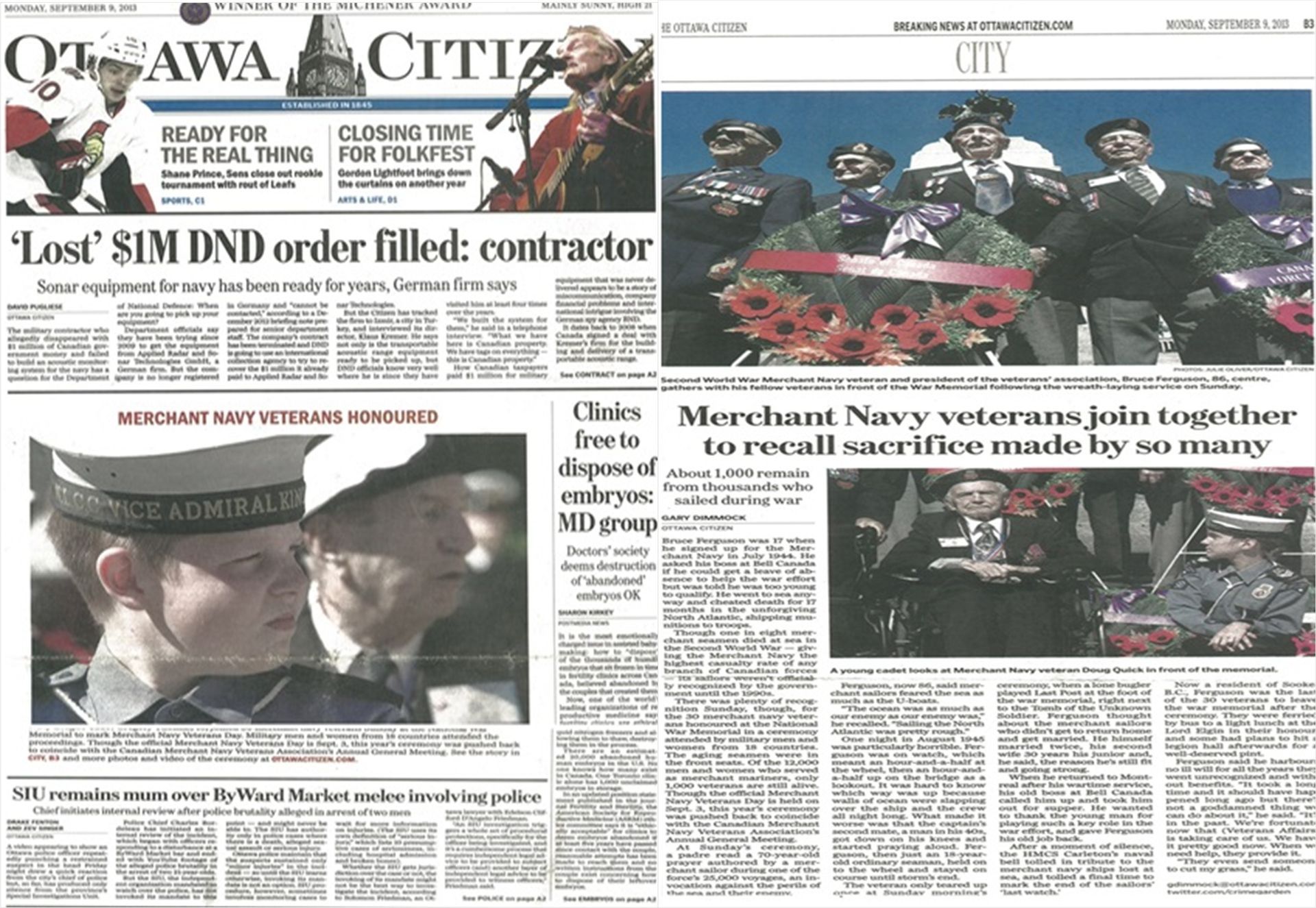 2013 MERCHANT NAVY VETERANS' DAY, NATIONAL WAR MEMORIAL (OTTAWA) -- OTTAWA CITIZEN