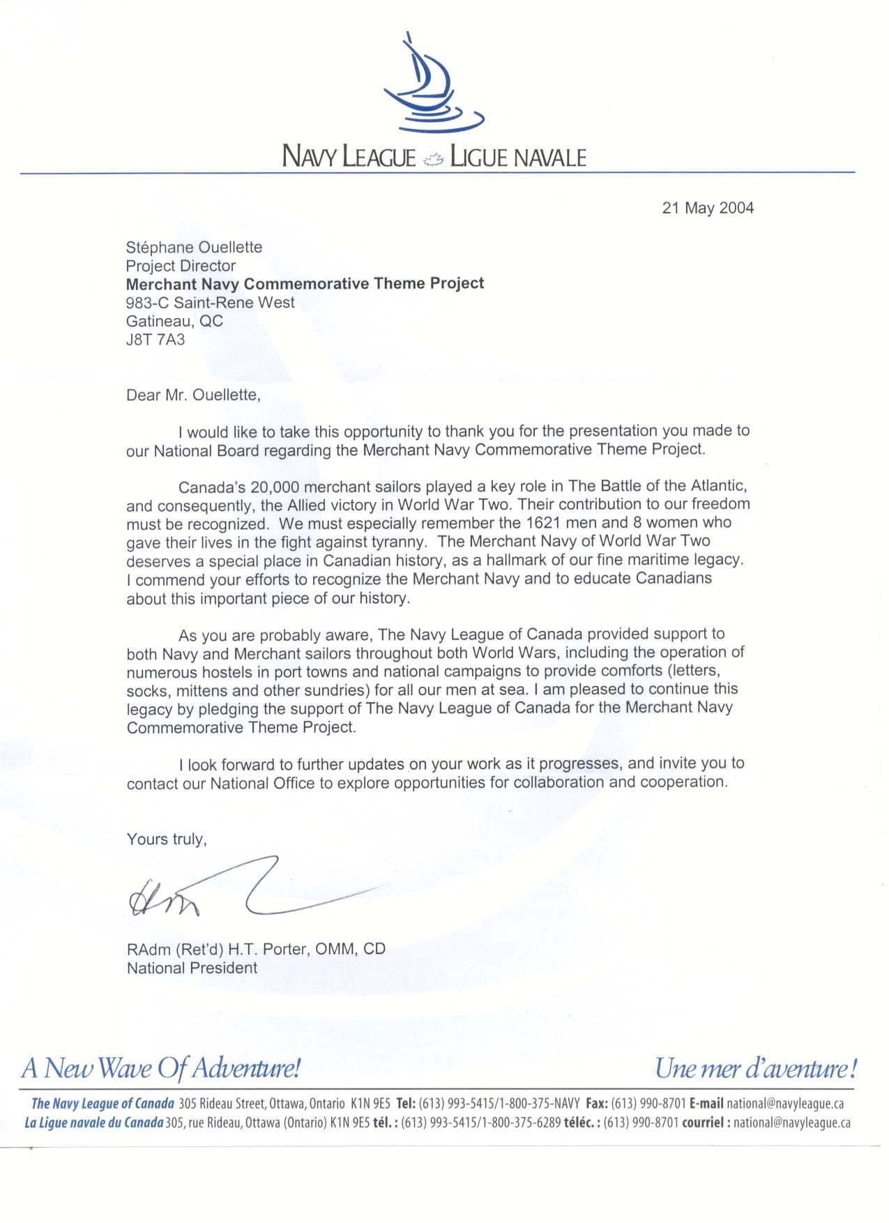 OTTAWA, TODAY: Mr. Stéphane Ouellette, President and Chief Executive Officer of the Merchant Navy Commemorative Theme Project (MNCTP), proudly recognizes the Navy League of Canada for over twenty years of exemplary support and partnership in advancing Canada’s culture of remembrance, maritime heritage, and public service.
